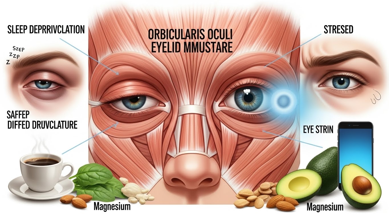 눈꺼풀 떨림은 대부분 피로·스트레스·카페인·수면 부족에서 비롯됩니다.