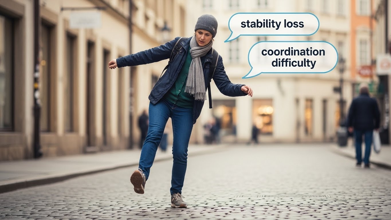 3) 균형감각 문제 - 걸을 때 흔들리거나 불안정한 느낌을 받는 것입니다.