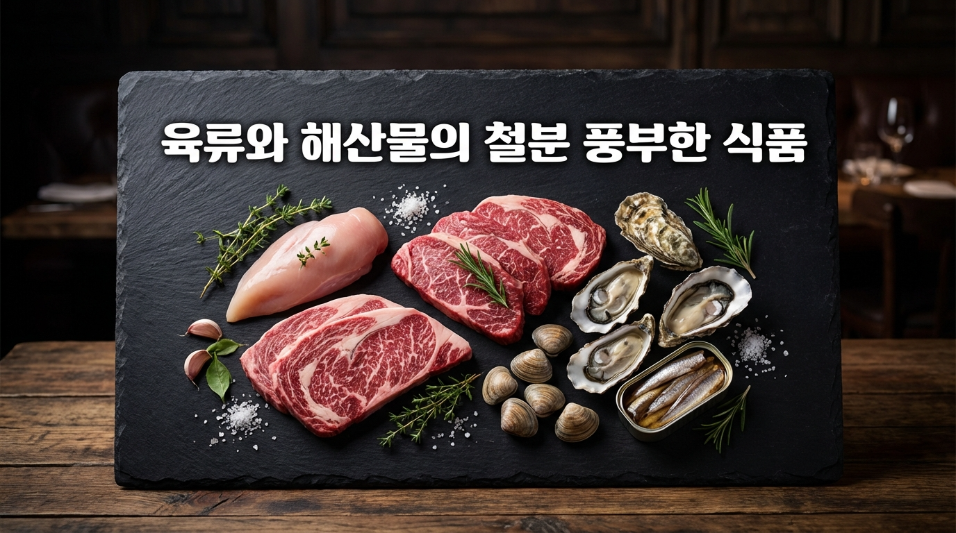육류와 해산물의 철분 풍부한 식품