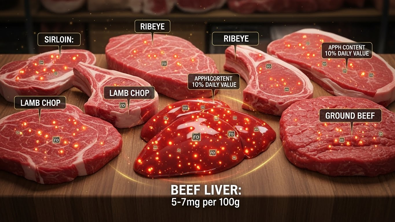 소고기와 양고기는 식품 중에서 가장 흡수가 잘 되는 헴철을 많이 함유하고 있어요. 소 간은 100g당 약 5~7mg의 철분이 들어 있고, 소고기 등심도 약 2~3mg 정도 들어 있답니다. 특히 간은 철분뿐 아니라 비타민 B12와 엽산도 풍부해서 빈혈 예방에 정말 효과적이에요.